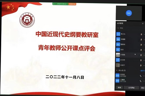 11月8日下午,中国近现代史纲要教研室通过钉钉会议召开了青年教师公开课点评会。会议由教研室主任陈雪主持,教研室全体教师参加了会议。