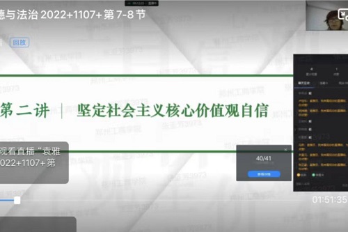 为持续深入推进我校“三进”工作,11月7日上午马克思主义学院思想道德与法治教研室袁雅莎教授通过钉钉直播方式开展了名师示范课,教研室全体教师观摩学习。