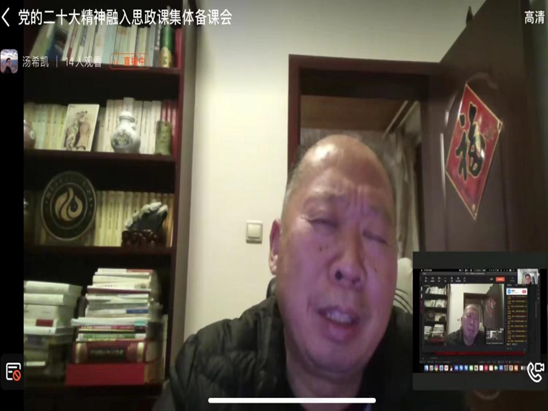 12月14日下午,为深入学习党的二十大精神,持续推进党的二十大精神融入思政课堂,形势与政策教研室通过钉钉会议的形式召开了集体备课会,会议由教研室主任汤希凯主持,教研室全体老师参加。